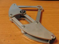 スケボーの天板のロール運動を前後の脚ユニットの逆位相ステアリング運動に変換するメカ機構 |