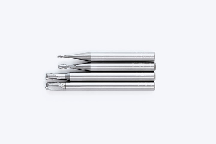 低価格ながらも高品質なアルミ・樹脂用エンドミルです。刃径Φ1~4mmの4本セットで、加工したい形状に合わせて刃径を選択できます。シャンク径がすべてΦ4なので、スピンドルユニットを交換せずにツール交換ができます。KitMillと一緒に購入する最初のエンドミルとしてもおすすめです。