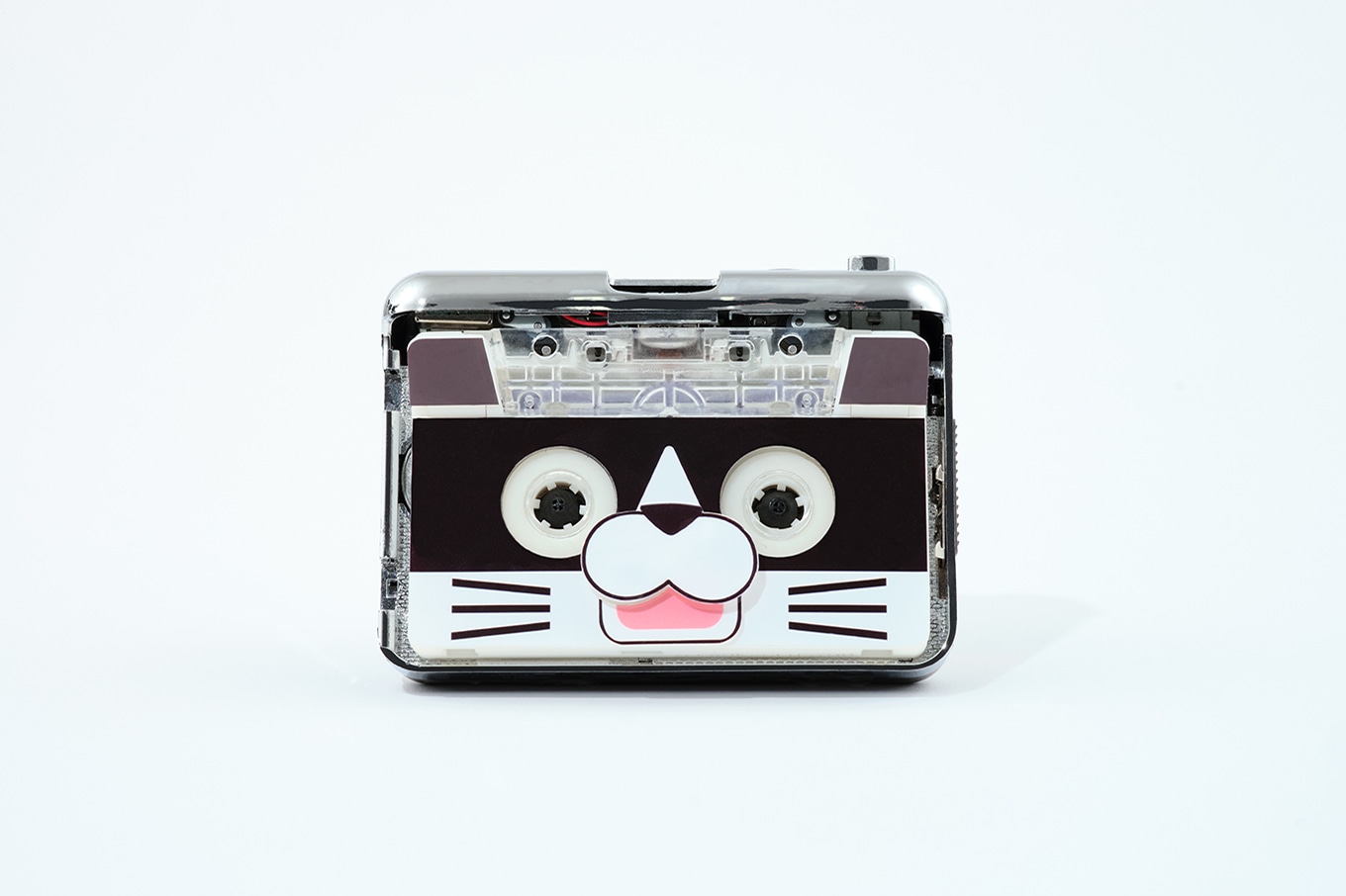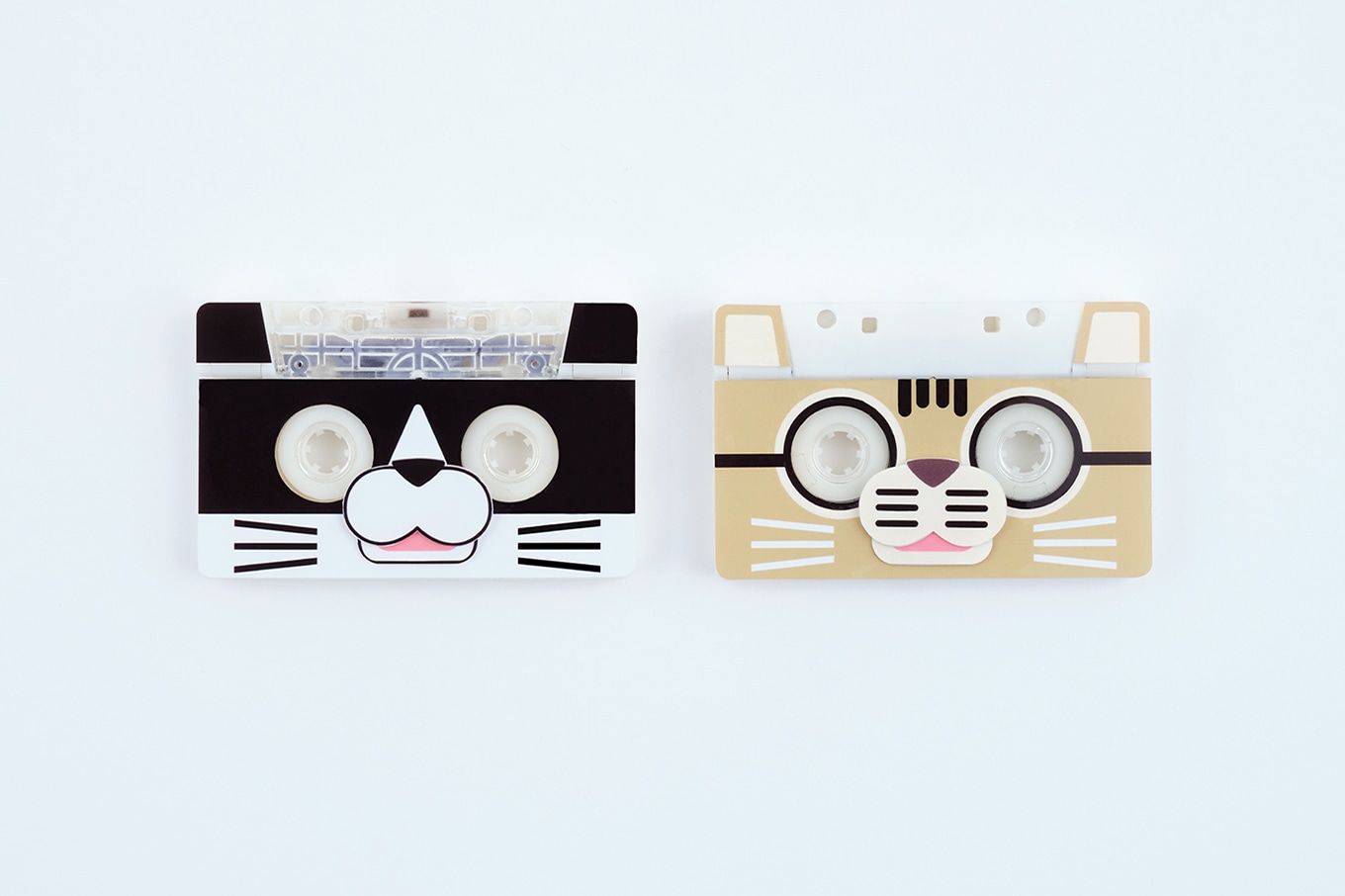 再生時の回転を利用して、猫の顔が動くカセットテープです。