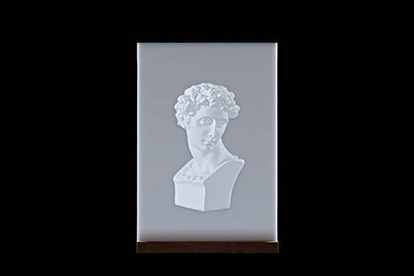 - 大理石を削り裏から光を当てると透過度の違いにより絵が浮かび上がります。