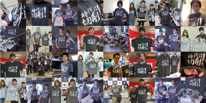 しかもその頃になると、「メイカームーブメント」と称される個人のものづくりがだんだんに盛り上がり始め、全国にFABスペースが次々と開設されました。KitMillを設置して下さる施設もたくさん現れ、まるで全国に私たちのショールームができたような状況になり、そのおかげでKitMillはこれまで以上に広く全国に普及していきました。私たちはその流れを受けて、「時代は切削」のTシャツを発売したところ、たいへん大きな反響をいただきました。今もそのキーワードをSNSで見かけることがあります。