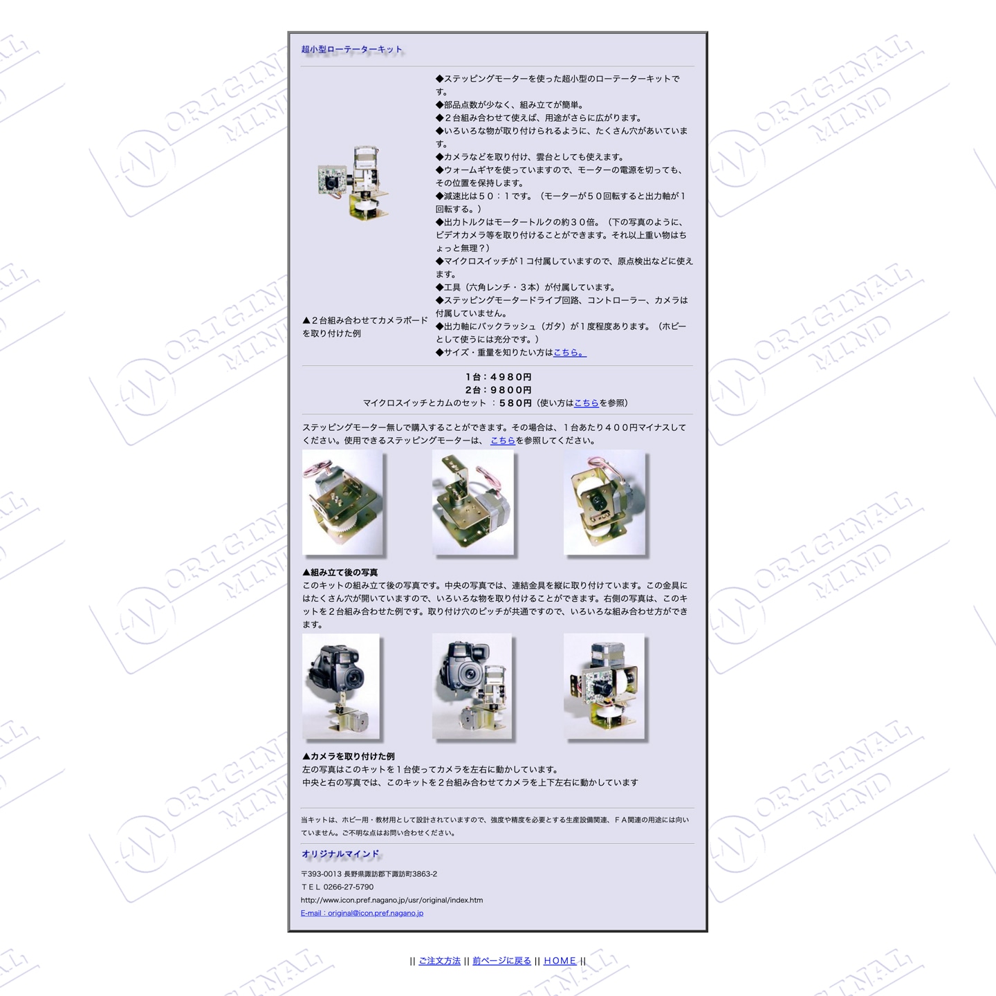▲ 最初のオリジナル製品「超小型ローテーターキット」1998年5月発売