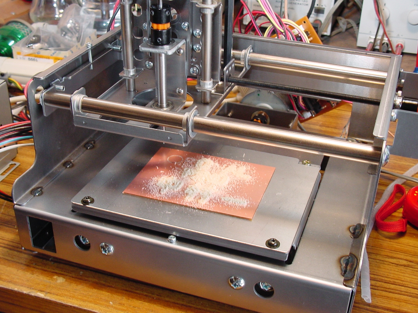 ▲ mini-CNCの試作機(2003年2月頃)。開発当初はCNCフライスではなく基板加工機として開発を進めていた。