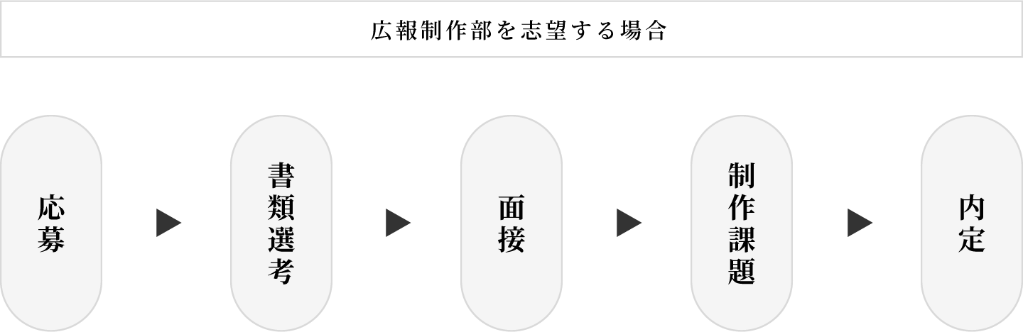 この課題は、応募者の皆さんと当社との相性を確認するためのものです。普段通りの制作スタイルでリラックスして取り組んでください。内容によっては苦手に感じる部分があるかもしれませんが、広報制作部ではお互いの強みを活かし合いながら仕事をしていますので、気負わず制作を進めていただければと思います。