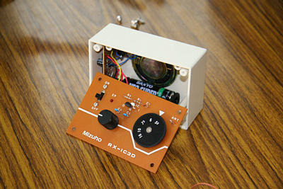 完成したラジオ。内部に見えるのが今回作成したAMPです。 |