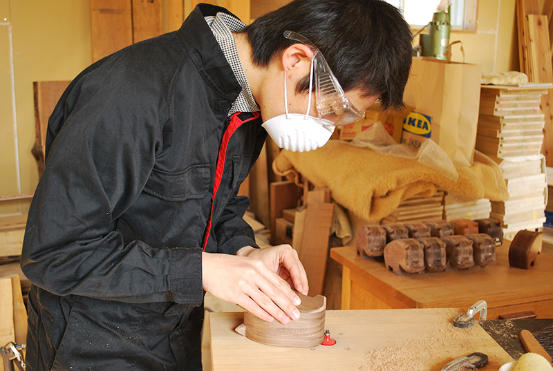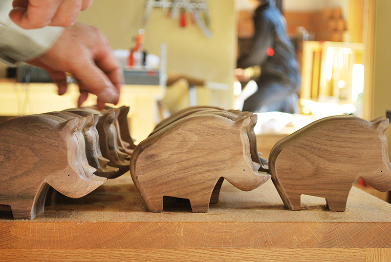 電子回路と木は意外な組み合わせのようですが、さわると音がするという新しさと、木の温もりにどこか懐かしさを感じる玩具となりました。部品は全て修理交換できるように設計しているので、時を経て木の色みや艶の変化などを楽しめます。