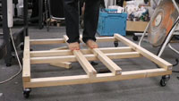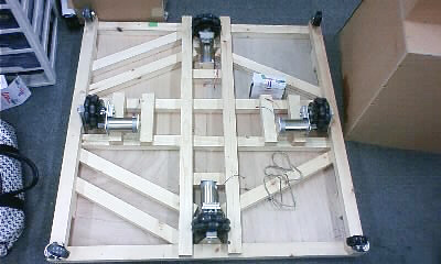 製作初期のフレームのみの写真です。この状態でも軽い人なら問題なく乗れます。完成版はこれから補強用の構造材を足しています。 |