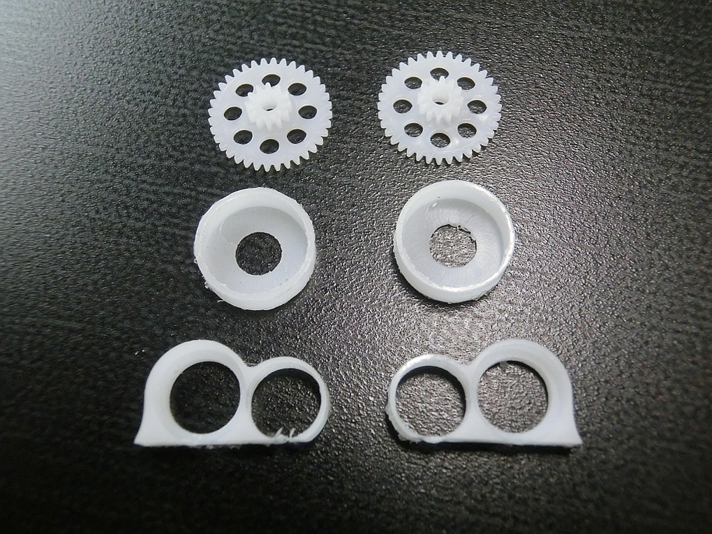 KitMill RD300で製作したホイールとモータマウント、肉厚は0.5mm! |