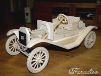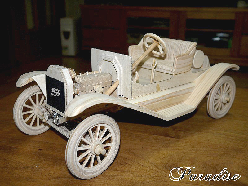 同じ作るなら約100年前に大量生産の礎を築いたT型フォードをと思い、ネットで画像やイラストを集め、CADで図面を起こし、CNCで部材の切削や加工を行いました。