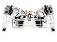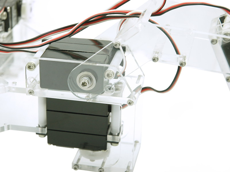 各サーボモータの関節部にはベアリングを使用し、足先位置の高精度を目指しました。 |