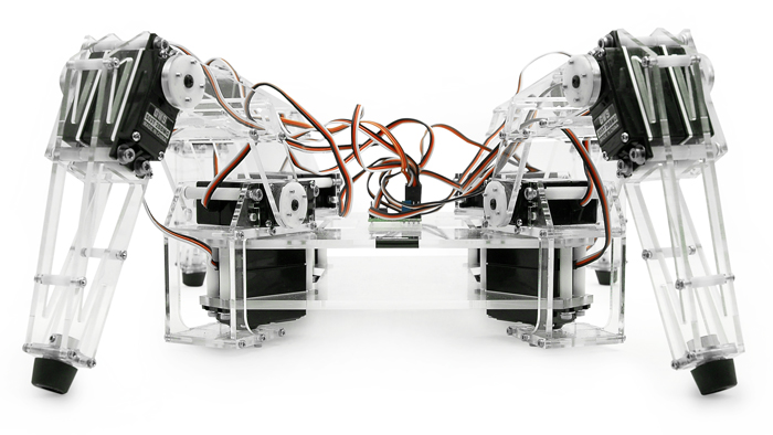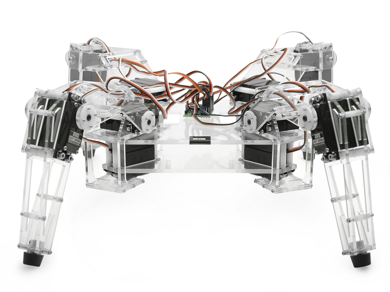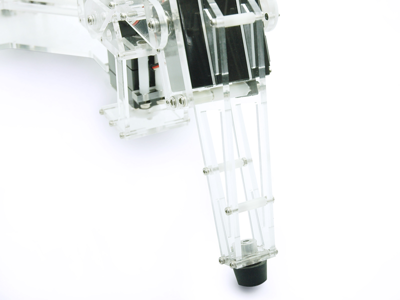 このロボットの目的として「4足歩行ロボットの動作や機構について学べる」なので、なるべくロボットに使用している素材に、透明なアクリル材を使用しました。