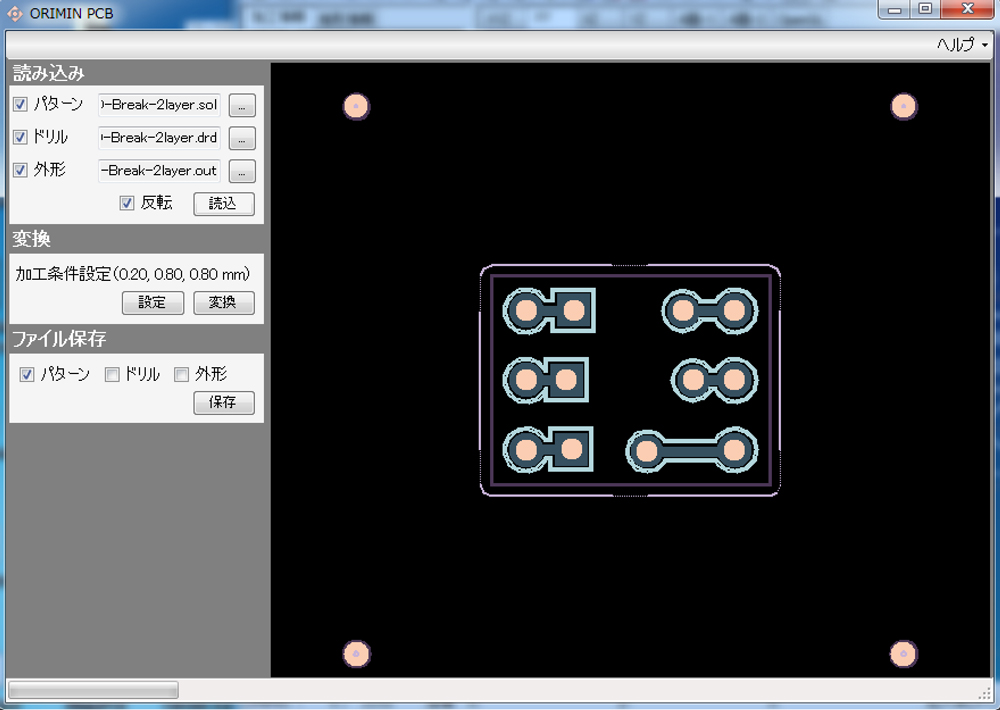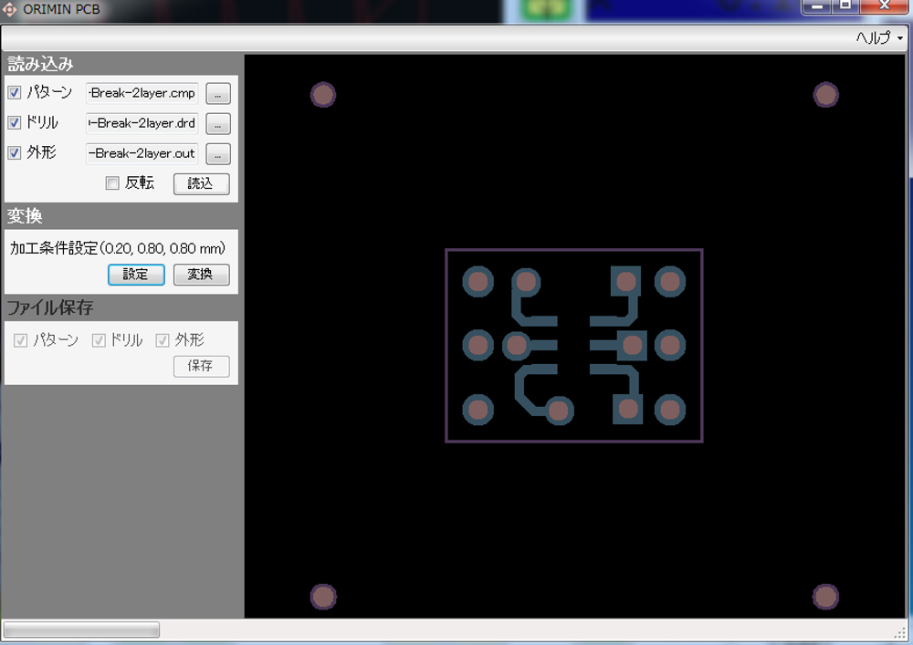 まだ誤差が残る方法ですが、CIP100で両面基板を作成することができました。