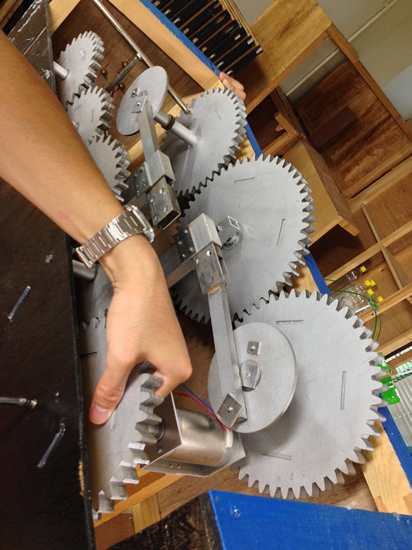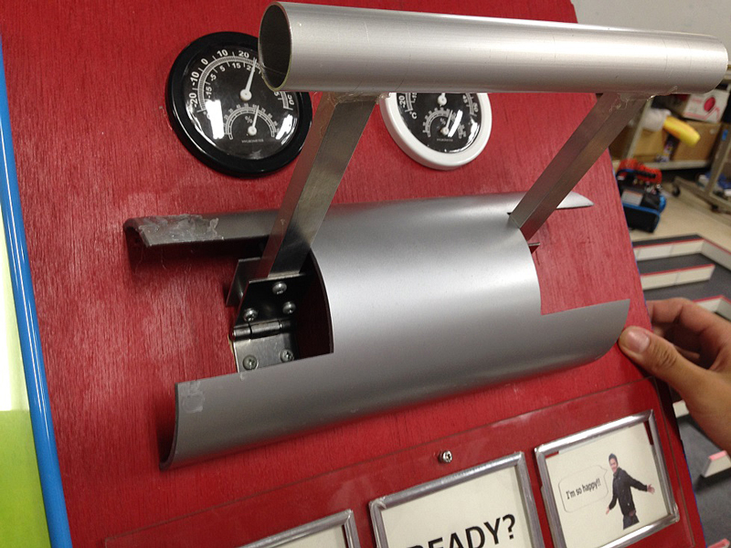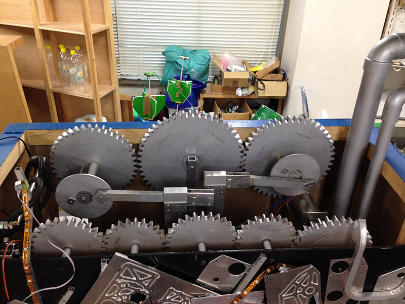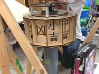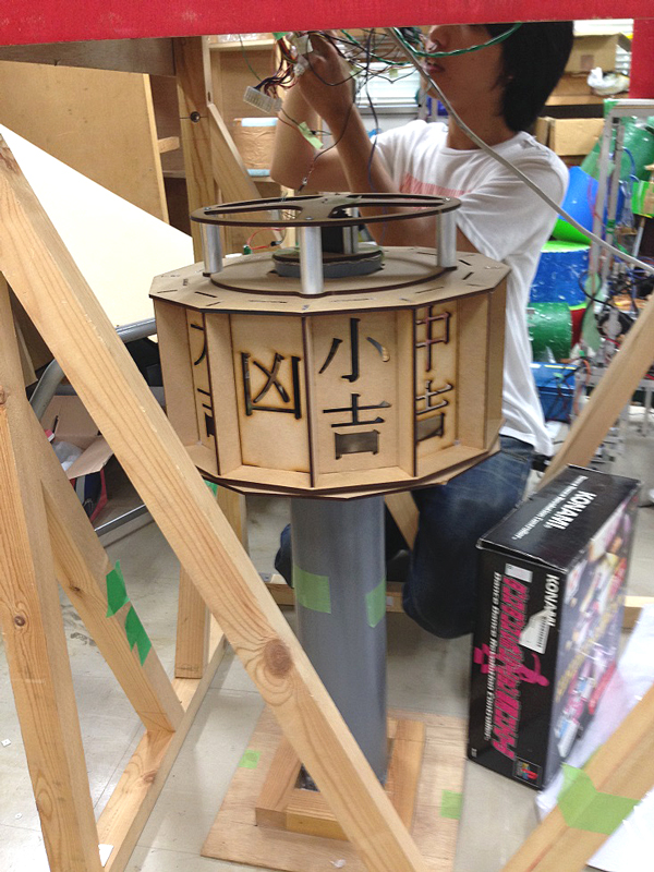基本、ただのおみくじですが、偽のスイッチがあったり、ギアやクランプ、パトランプなどの無駄な動作を多数取り入れ、おみくじを引く人を驚かせ楽しませると共に、いかにも運勢を占っているかのような演出を目指しました!