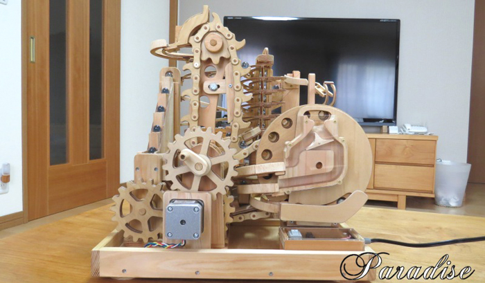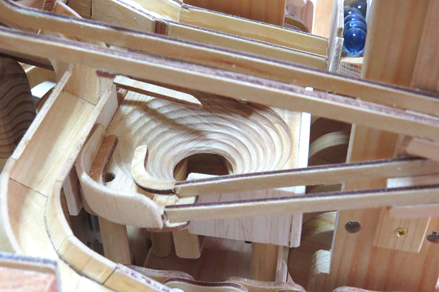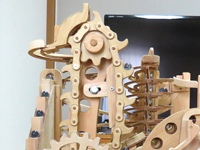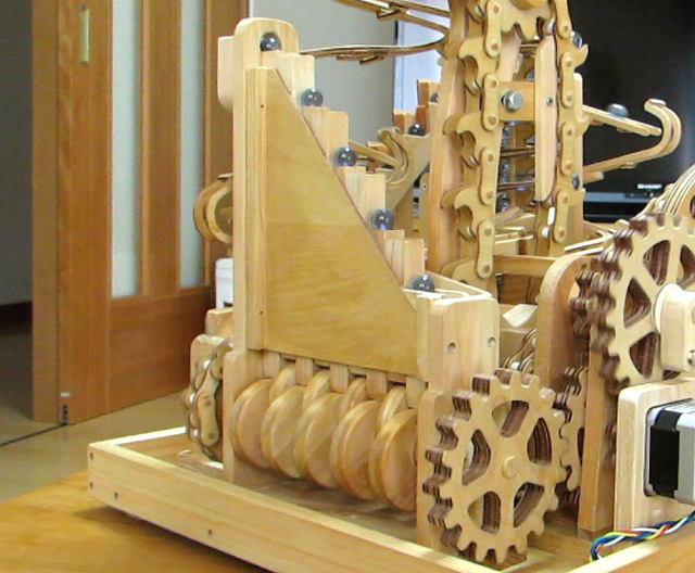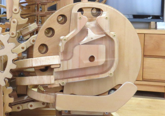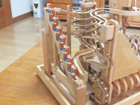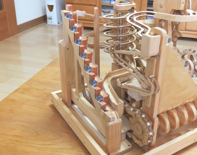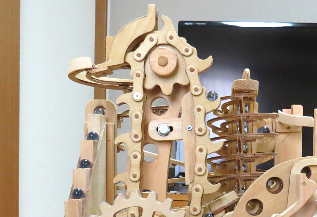 今回の作品もチェンや歯車の加工にCNCフライス盤が威力を発揮し、小さなお子さんから年配の方まで楽しめるマーブルマシンが完成しました。
