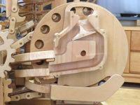 この作品は5つのマシンを一つのトレイに組み、一つのハンドル操作で歯車やチェンを介して全てのマシンが連動します。