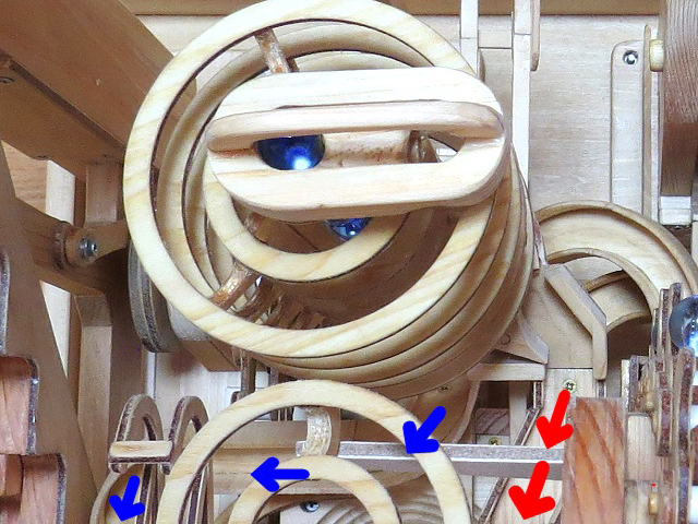 ビー玉が一部のマシンに渋滞することなく均等に動くように工夫しました。