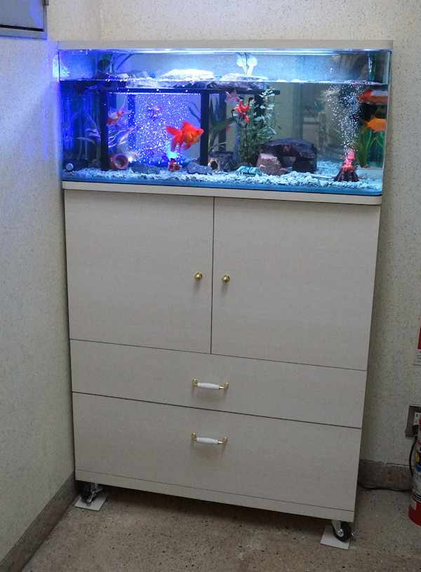 先日、和風の水槽を作ったところなのですが、ヒーター無しタイプだったので、屋外で冬を越せない小さい金魚や寒さに弱い種類の金魚を屋内のヒーター付き水槽で飼う為に、市販の水槽に合った台を作る事にしました。