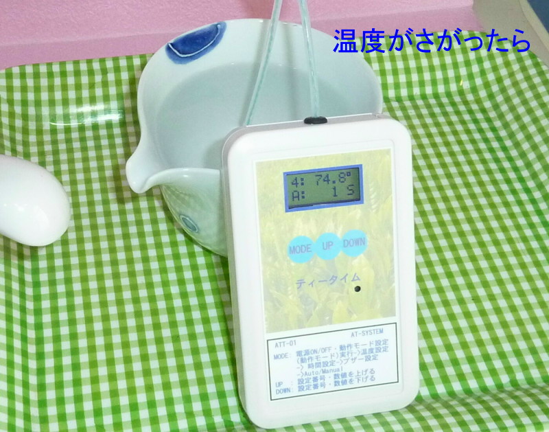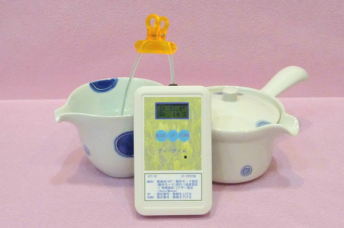 緑茶をいれる際の温度と時間のタイミングをお知らせする装置です。