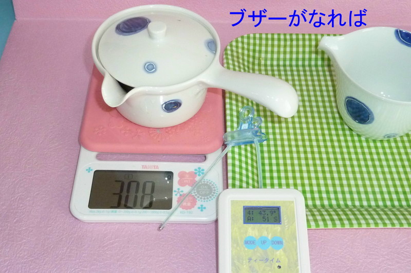 湯冷ましで湯温度が設定値になれば「ぴぴっ」となり、茶葉に湯を注いでから設定時間経過すれば「ぴぴっ」と知らせてくれます。温度、時間は LCD表示器で確認できます。