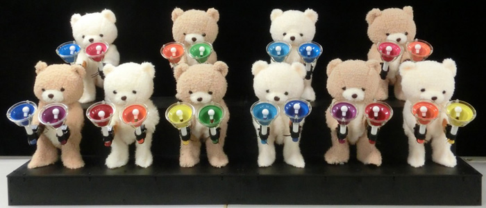 くまさんロボットは10体あり、全部で20音のハンドベルを演奏することができます。