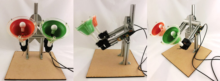 1つのホビーサーボで人のようにハンドベルを振ることで演奏するこができます。
