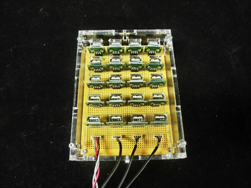 各ホビーサーボは写真5のような中継基板を通して写真6のメインハブに接続されています。