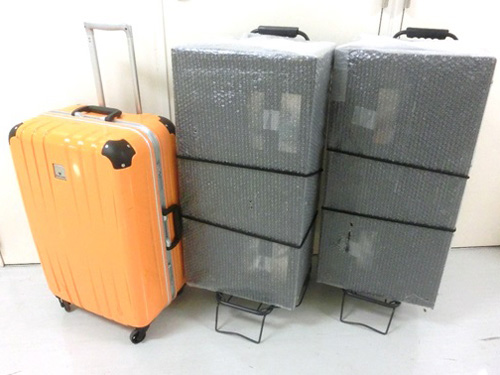 全部を格納すると、制御用のPCや予備の部品を全てあわせて写真8のようにスーツケース3つ分に収めることができます。