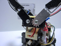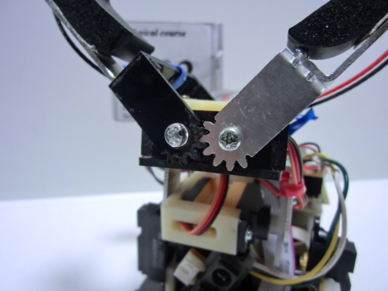 対象物をつかむグリッパーを両開きにするため、部品と一体化してモジュール1の歯車を削り出したのが工夫した点です。