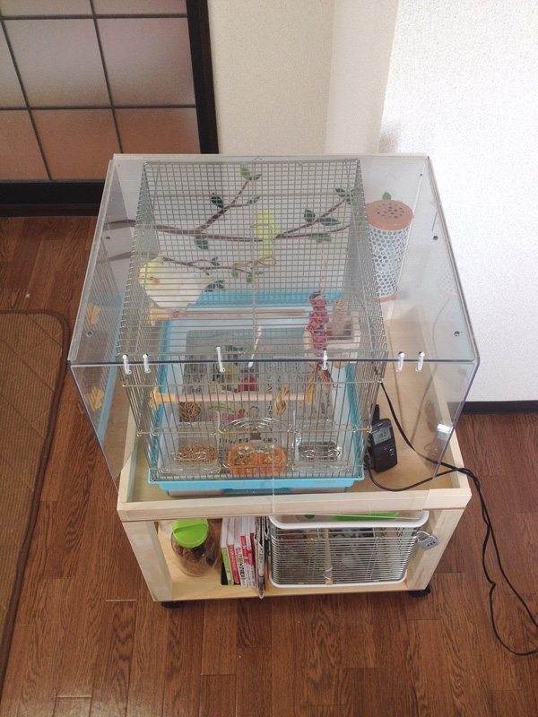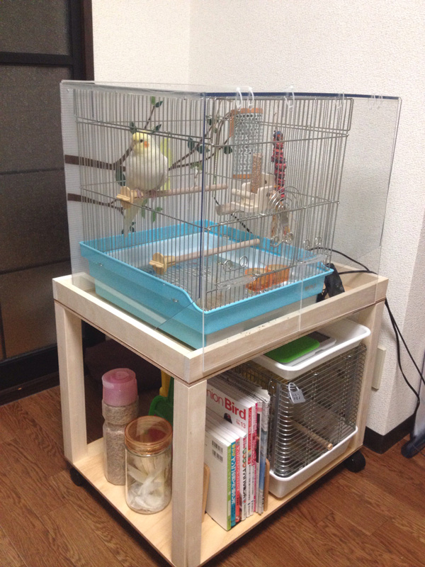 愛鳥の鳥かごの保護カバーと、かご台を作りました。