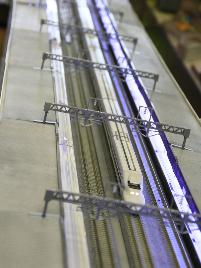 新幹線ホームを上より撮ったもので、架線梁もHAKUで加工し組み立てたものです。