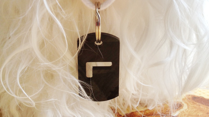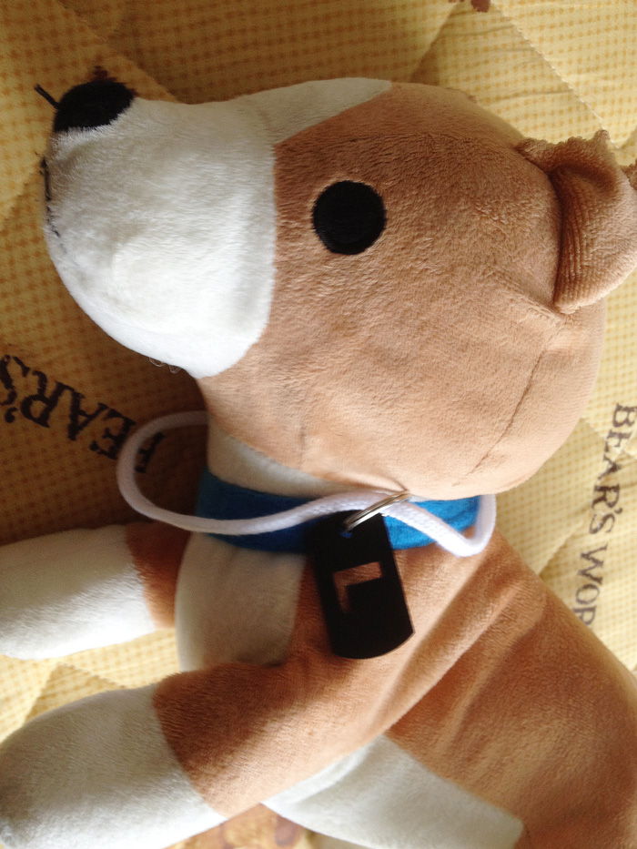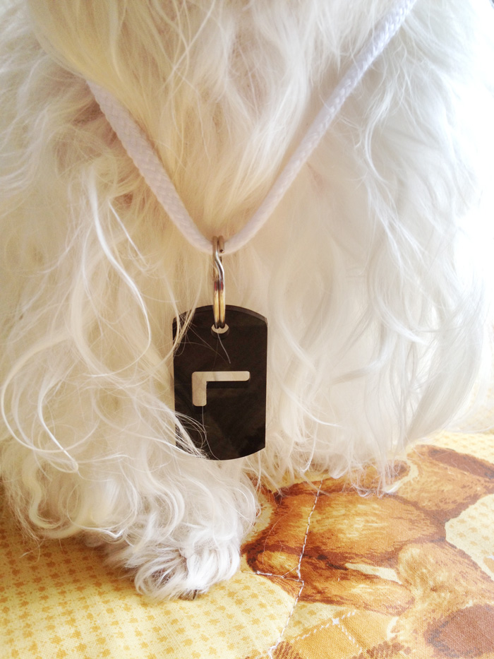 とりあえず完成したドッグタグをドッグにつけてみました。でも犬にドッグタグつけたらただの鑑札ですね。