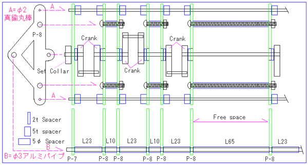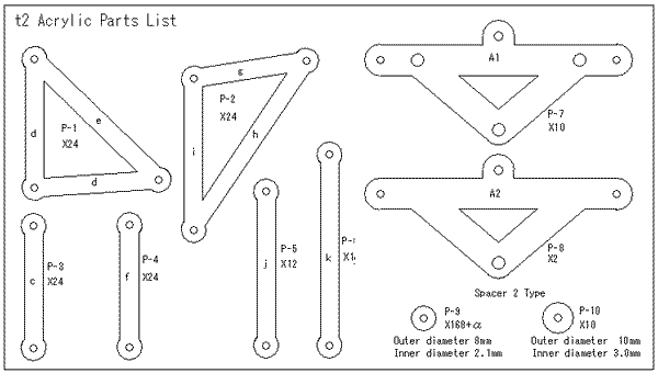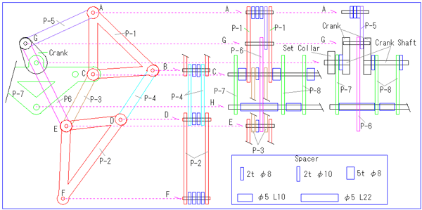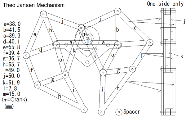 ここで使ったテオヤンセン・メカニズムの基本寸法表です。