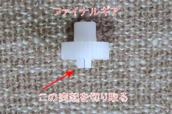 ファイナルギヤとポテンションメータの連動を分離してストッパーを取り去る。