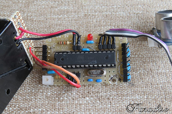 自作マイコン基板のようす。自作が苦手な方は、Arduino nanoを使う方法があります。