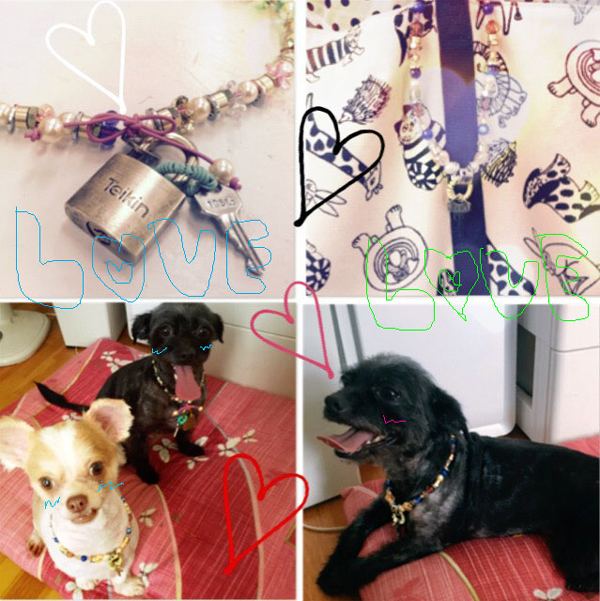 機械部品を使って愛犬たちのアクセサリーを作ってみました。