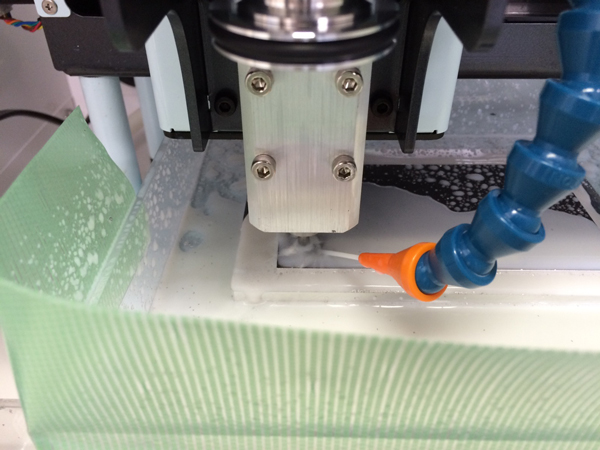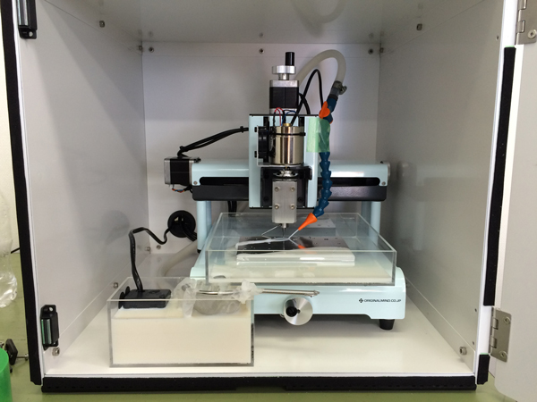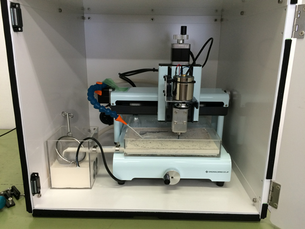 お気づきの方もいるかと思いますが、実は試作2号機です。試作1号機は横から排水するタイプだったのですが、うまいこと排水ができないのと、切粉が流れない等の不具合があったので、作り直しました。