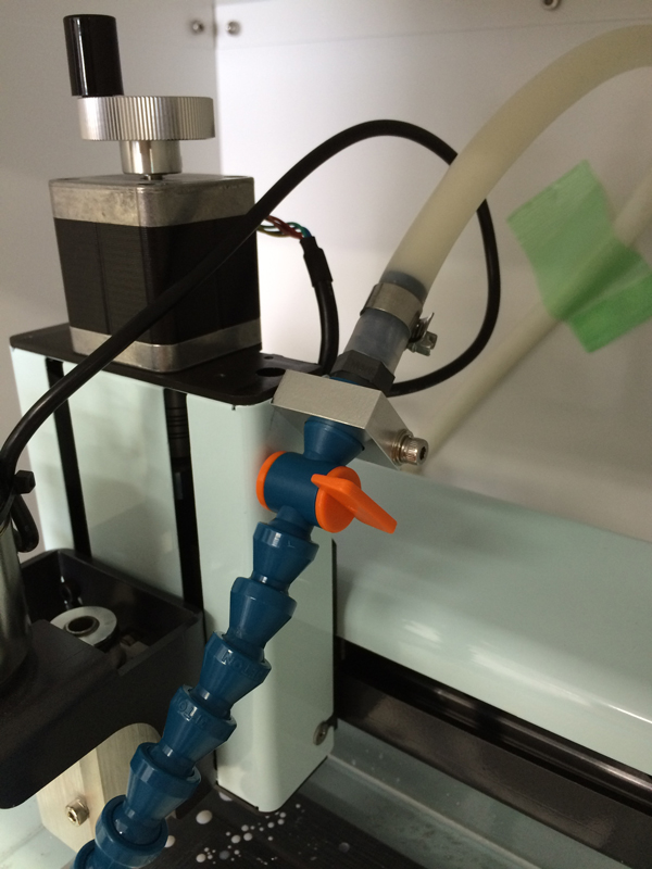 固定は、QtのZ軸カバーのねじを外して取り付けました。バルブの調整とクーラントの位置調整が格段にし易くなりました。