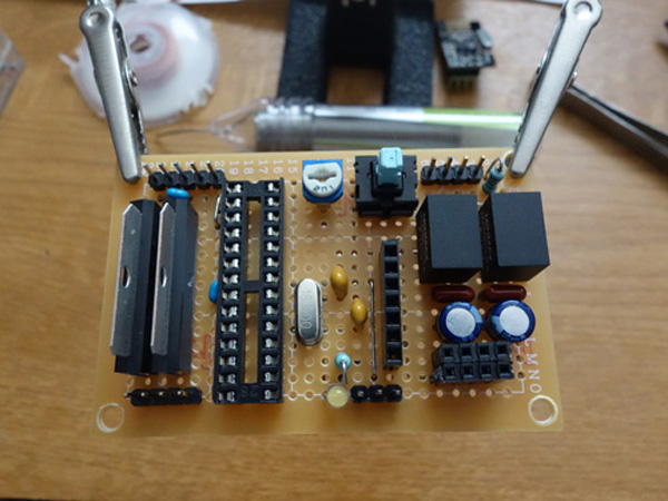 完成した基板、試作で使ったワイヤレスモジュールが載っています、基板の小型化はまだ可能なようです。