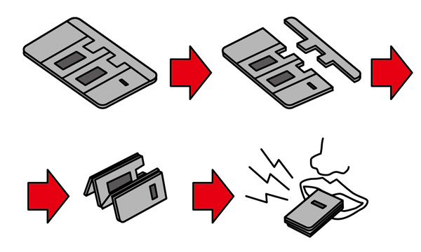 災害に備え、「緊急用ホイッスル」は常に持ち歩いた方が良いですが、邪魔になってしまうので、財布に入るようにしたカード型ホイッスルです。アルミ製ですが、ギリギリまで削っている為、手で簡単に切り離せたり、折り曲げたり出来、組み立てるとホイッスルとして使えるようになっています。音を鳴らせるまでに、何度も試行錯誤を繰り返し、KitMill BT200でアルミを削って作りました。使用時には組み立てますが、一度組み立てると元には戻せません。市販の緊急用ホイッスルにも負けない位の大きな音が鳴ります。カードの状態で財布に入れている時、意図せず折れ曲がったりしないように、切り離す部分など構造にも工夫しています。