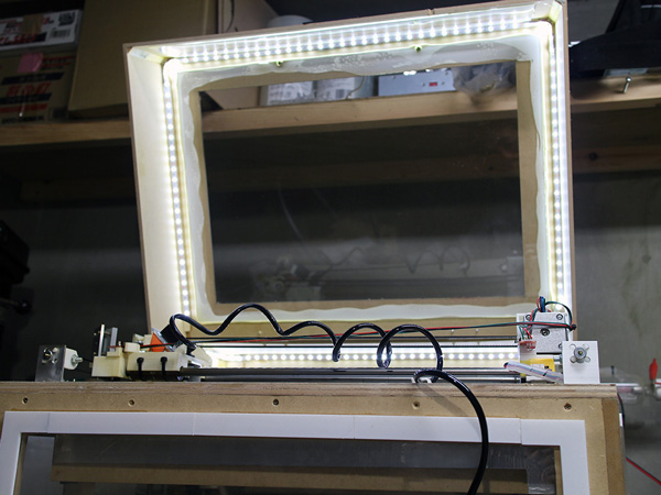 全体像です、箱内にLEDを100個程度敷き詰め照明としています