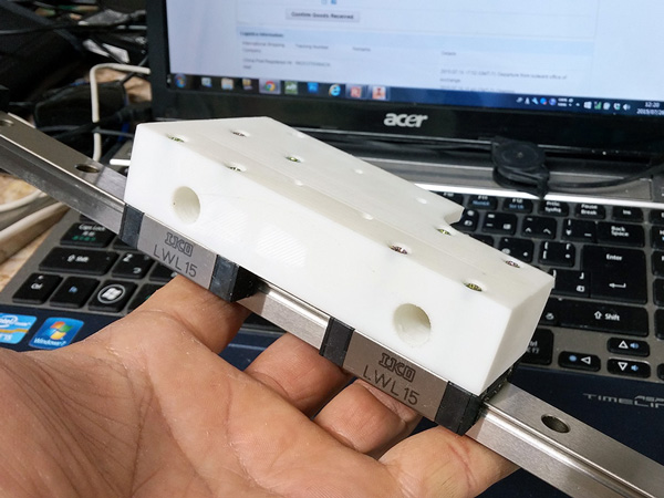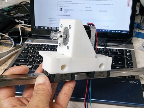 X軸モータホルダー、リニアガイドは約12年前にオリジナルマインドで購入