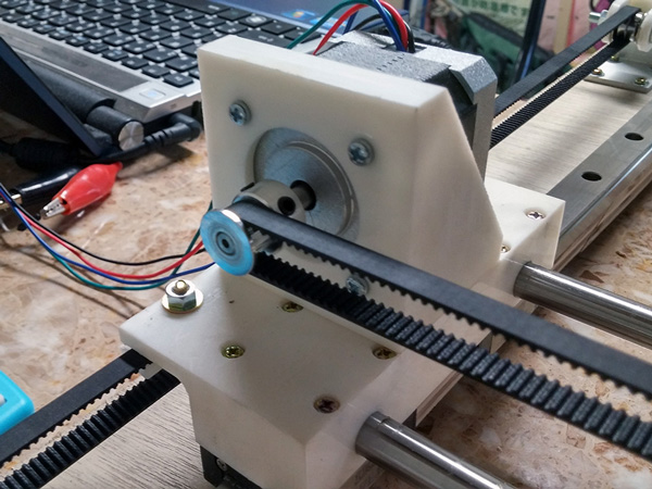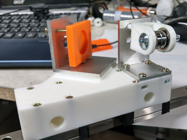 Z軸製作 今回使用した集光レンズは2インチ(50.8mm)が焦点距離ですので切る材料によって高さ合わせが必要になってきます。ここはMACH3を通さずarduinoで単独動作させています。(動作中動かすことはありません)