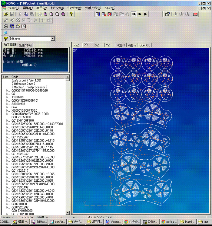 Cut2Dで作成したNCコードは切削時にZ軸を切削時の速度で下ろします。そのためポケット加工のようにZ軸の動作が多い加工では空転時間が極端に長くなってしまいます。そこで加工時にZ軸を加工面ギリギリまで高速で下ろすNCコードに改造するためのソフトウェアを作成しました。