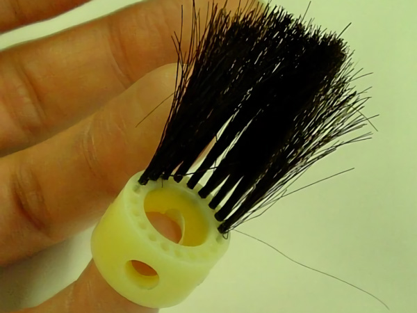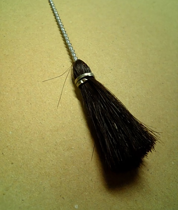 毛ブラシ。化学繊維だと摩擦熱で溶けてしまうかもしれないので天然素材にこだわる。絵筆でも代用可能
