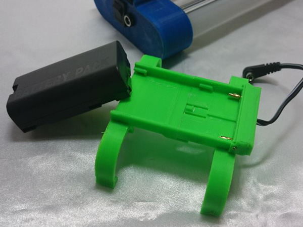 ビデオカムコーダ用の電池がたくさんあったのですが、使い道がなくて放ってありました。3Dプリンタを手に入れたことで、ホルダが作成できるようになりいろいろと使えそうです。