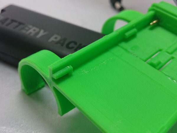バッテリの側面の溝に突起がはまります。切削では作成が困難でした。