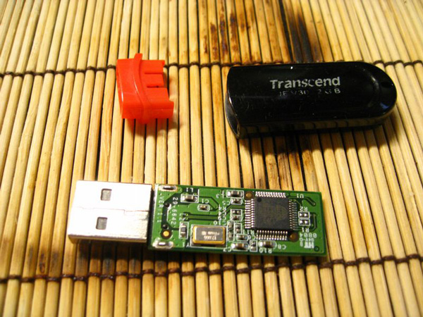 USBメモリを分解します。今回使用したのはたまたま手元にあったTranscend 2GB JetFlash V30 USBメモリです。中の基板サイズが同じなら他の容量のメモリでも入りますが自己責任で確認してください。
