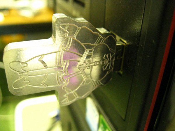 卓上CNCフライスHAKUを購入した頃に勢いで作ったUSBメモリを投稿いたします。USBメモリのフタを無くしてしまったためせっかくなので購入したばかりのHAKUを使ってフタを作ろうか。と思い当時はやっていたネタを盛り込んだUSBメモリを作成してみました。フルメタルなだけに強度はバッチリで特別な機能などはありませんが未だに現役で使用しています。肝心のフタですが主張が激しいのでなくさずにすんでいます。もし無くしてしまってもまた作ればいいだけなのですが。