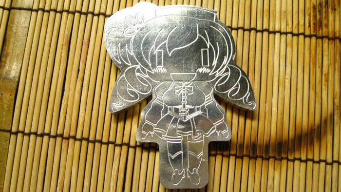 表面。パーツを切り抜きます。線の深さは0.06mmなのでZ軸の精度が悪いと線が消えます。