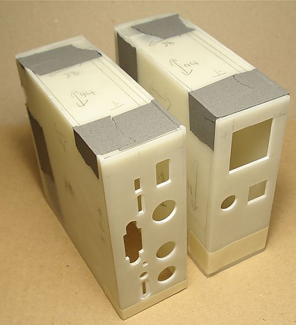 写真左は実機のX68000です。右側は今回自作したケース(外観寸法 幅100x高さ130x奥行114mm)です。